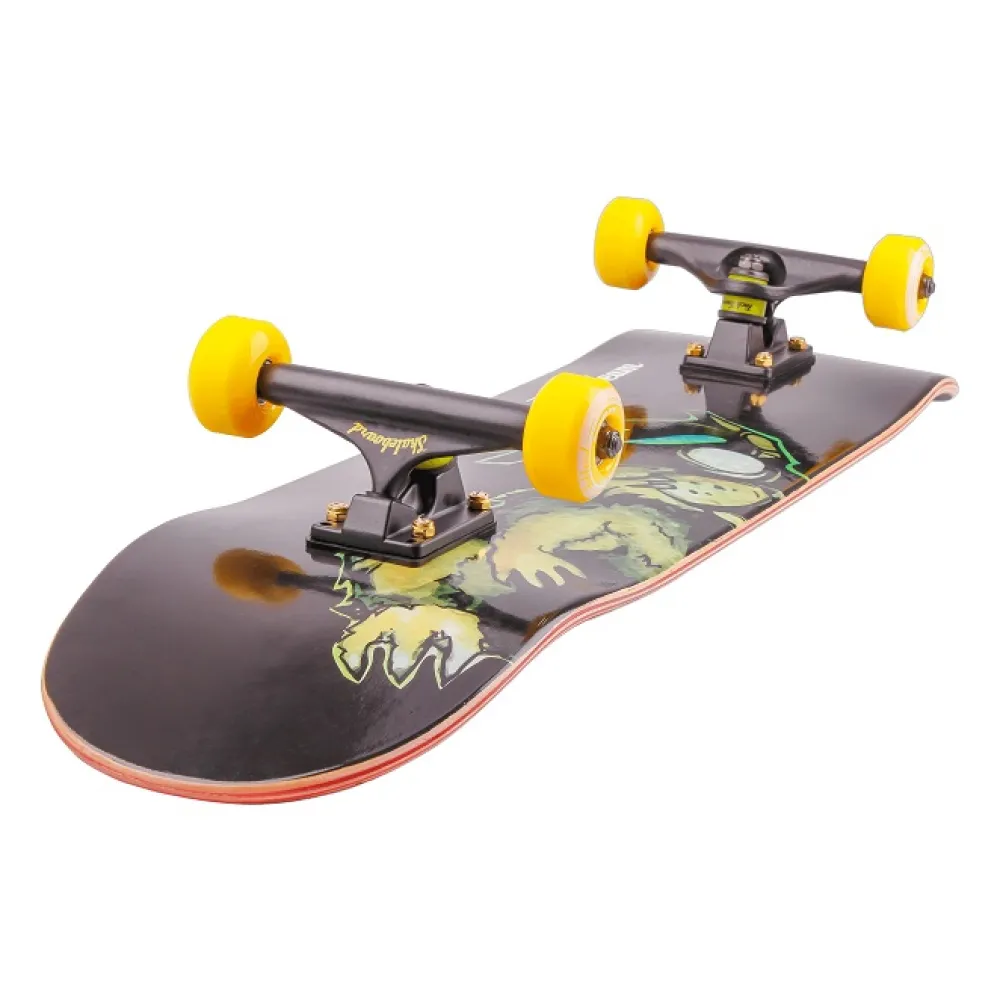 Доска изготовлена из прочного и надежного материала изготовления, оснащенного двойным кольцевым изгибом. Характеристики обеспечивают высокое качество трюков, прыжков и маневров. Высокая жесткость колес (диаметр 52 мм) обеспечивает стабильность, что важно при экстремальной езде. Дека представлена удобными размерами, покрыта шкуркой, исключающей случайное соскальзывание стоп. Амортизаторы с параметрами жесткости 100 обеспечивают плавность езды при преодолении проблематичной местности.