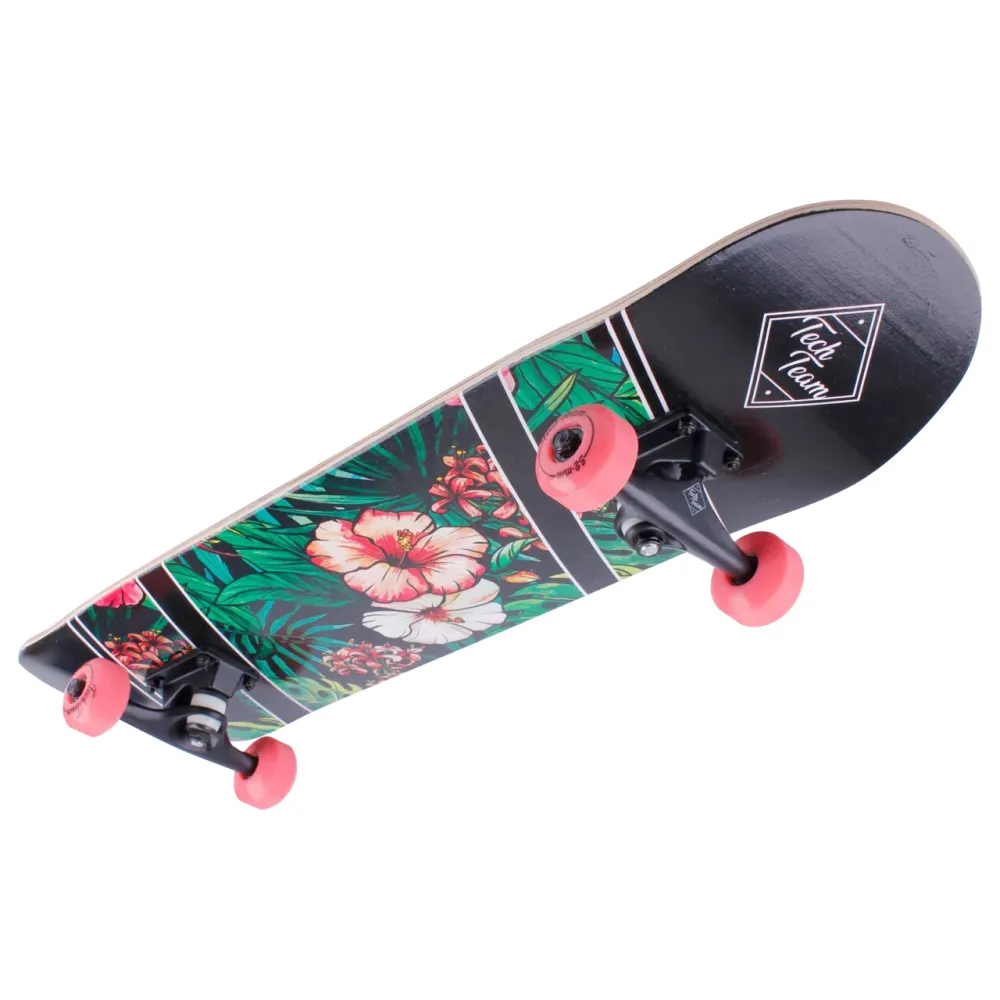 ДЕРЕВЯННЫЙ СКЕЙТБОРД TECH TEAM X-GAME цветы стал хитом этого сезона и лидером продаж. Модель создана для новичков подростков и старшего поколения весом до 80 кг. Технические характеристики скейта превзошли ожидания. Производитель постарался над производством, учел ошибки предыдущей модели и пожелания райдеров-профессионалов.