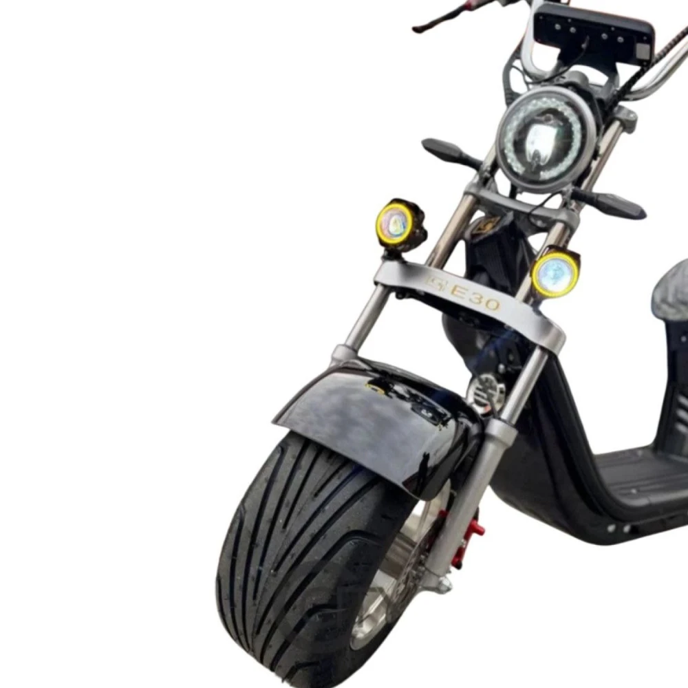 Электроскутер Citycoco GT E30 в черном глянцевом цвете — это универсальное средство передвижения. С мощностью 3000W и задним приводом, он обеспечивает отличную динамику и маневренность на городских улицах. Благодаря двухколесной конструкции и надувным колесам диаметром 18 дюймов, скутер уверенно держится на дороге, что делает его идеальным для поездок по различным покрытиям.Съемный аккумулятор с напряжением 60V позволяет преодолевать расстояние до 50 км на одном заряде, что делает его идеальным вариантом для ежедневных поездок. Время зарядки составляет всего 5 часов, что обеспечивает быструю готовность к новым приключениям. Кроме того, в конструкции предусмотрено дополнительное место под аккумулятор, что увеличивает возможности автономной работы.Скутер весит 75 кг и может выдерживать максимальную нагрузку до 200 кг, что делает его подходящим для различных пользователей. Дисковые гидравлические тормоза обеспечивают надежную остановку, а большое мягкое сиденье и амортизаторы гарантируют комфорт даже при длительных поездках.Дополнительно, Citycoco GT E30 оснащен бортовым компьютером, зеркалами, звуковым сигналом, фарой и поворотниками, что повышает безопасность и удобство. Большая дека под ноги и прочная конструкция делают поездки еще более приятными.Электроскутер Citycoco GT E30 — это идеальное сочетание стиля, мощности и комфорта для тех, кто ценит удобство и скорость в городской среде.