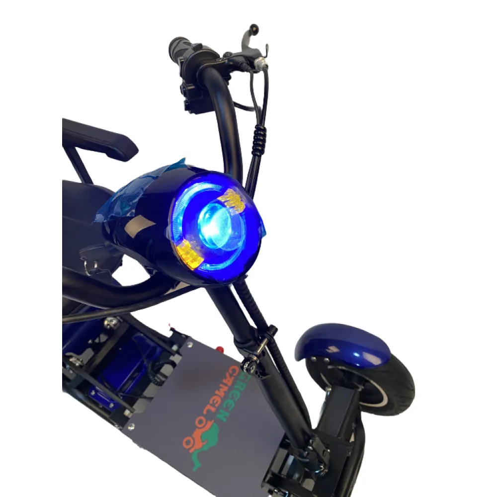 Электро трицикл GreenCamel Кольт 801 FAT (36V 15,6Ah 2x400W) с удобным комфортным креслом в синем цвете – выглядит комфортно и удобно. Первое впечатление не обманывает пользователей. Купить трицикл по выгодной стоимости, насладиться преимущественными характеристиками и приятными бонусами предлагает наш интернет-магазин.