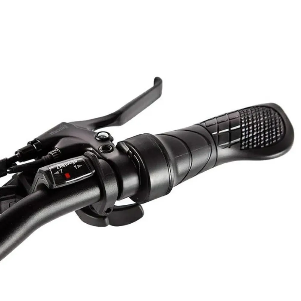 Модель оснащена современным электромотором на 250 Вт. При емкости АКБ 8А*ч максимальная скорость составляет 30 км/час, а максимальный запас хода 40 км. Аккумулятор размещен в специальном блоке за подседельной частью. Комфортное эргономичное седло регулируется по ростовым параметрам ездока. Максимальная грузоподъемность составляет 110 кг. 20-дюймовые колеса с 7-скоростной трансмиссией и амортизаторами готовы доказать, что скоростная накатистая езда на велогибриде возможна даже по неровной местности.