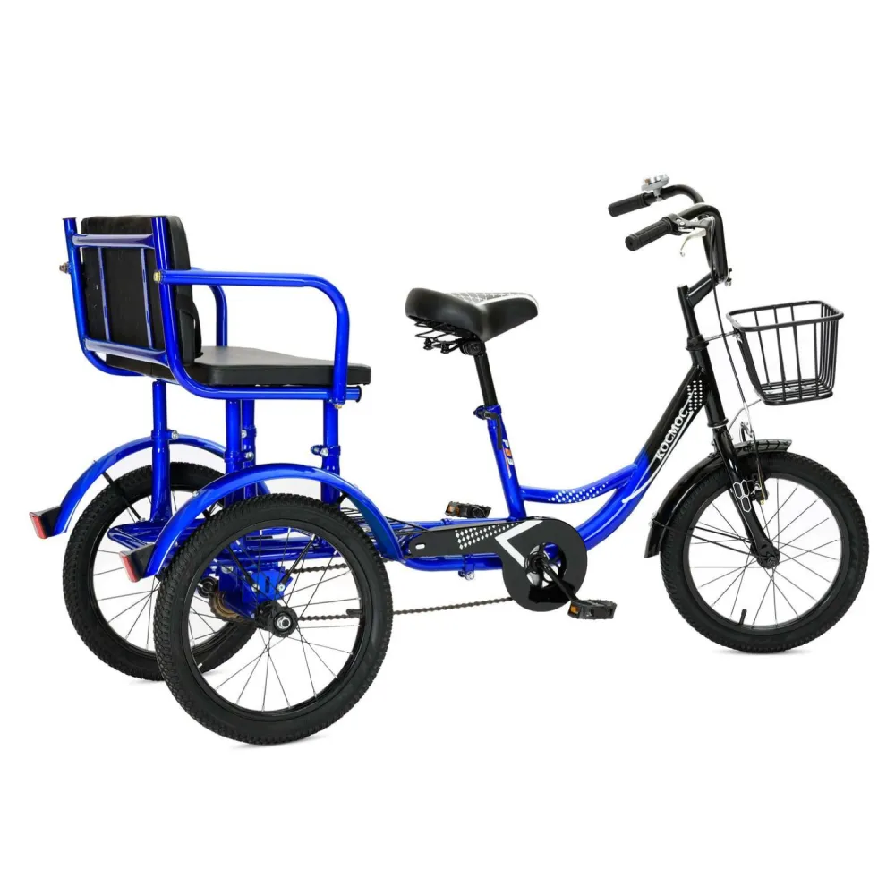 Отличается от других детских РВЗ всеми 16-дюймовыми колесами и двухместным дизайном — новинка 2026 с усиленной рамой для парка/двора. Преимущества перед Forward Cosmo: устойчивость 3 колес, регулировка руля/седла. Обновления 2026: широкие покрышки, усиленные спицы/ободья; комплектации по цветам (синий/черный); наград нет, уникально — компактность для дверей.